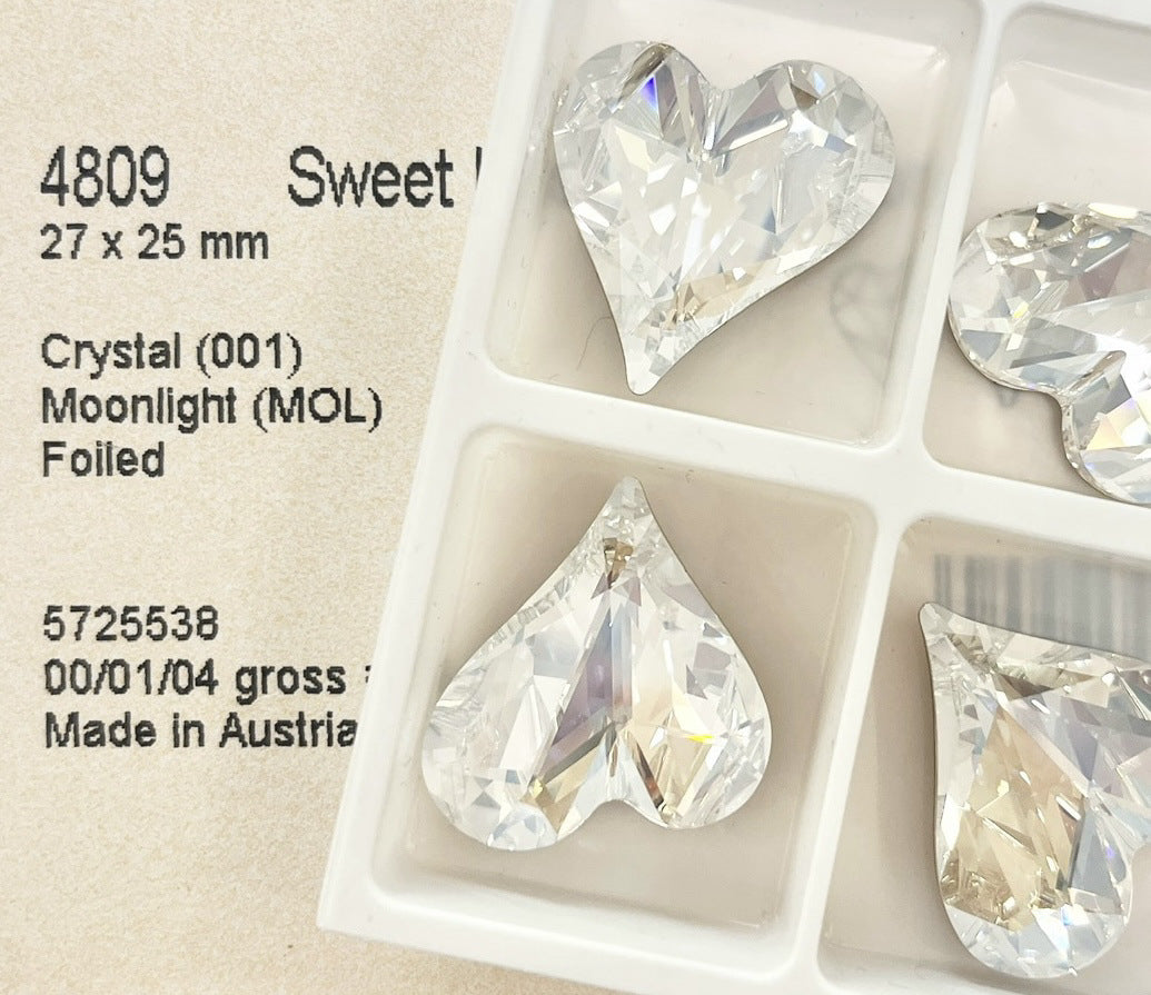 Swarovski 4809 crystal Sweet heart Fancy Stone 001MOL Crystal Moonlight(27x25mm)