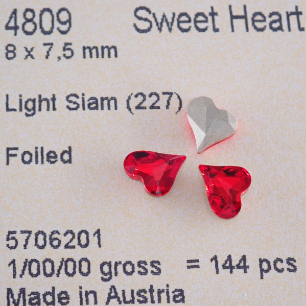 Swarovski 4809 crystal Sweet heart Fancy Stone 227Light Siam(8x7.5mm)